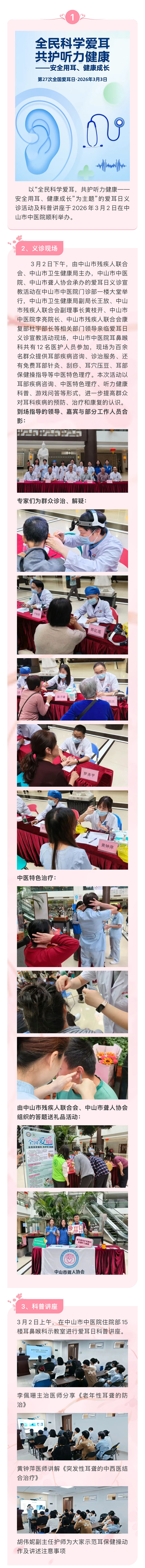 中山市中医院耳鼻喉科3月2日“爱耳日”活动预告