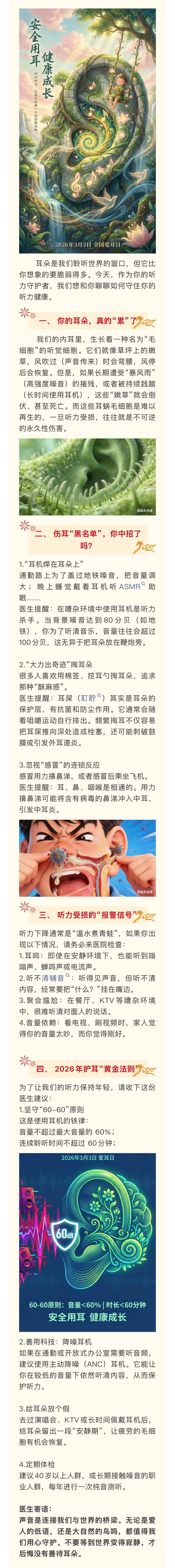 〖爱耳日科普〗耳鼻喉科医生给您的2026护耳指南,守住你的听力健康!