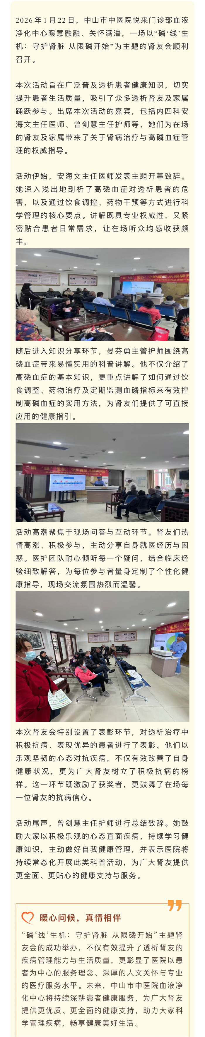 “磷‘线’生机:守护肾脏 从限磷开始”--中山市中医院悦来门诊血液净化…
