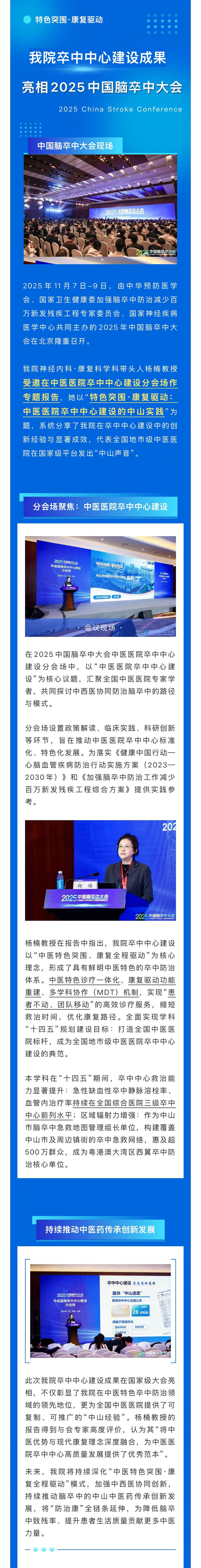 国家级大会上的“中山声音”:我院卒中中心建设成果亮相2025中国脑卒中大…
