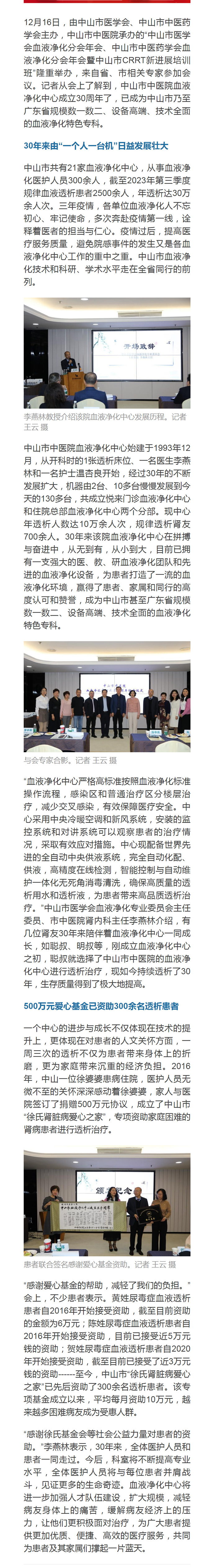 年透析人数10万余人次!中山市中医院血液净化中心成立30周年