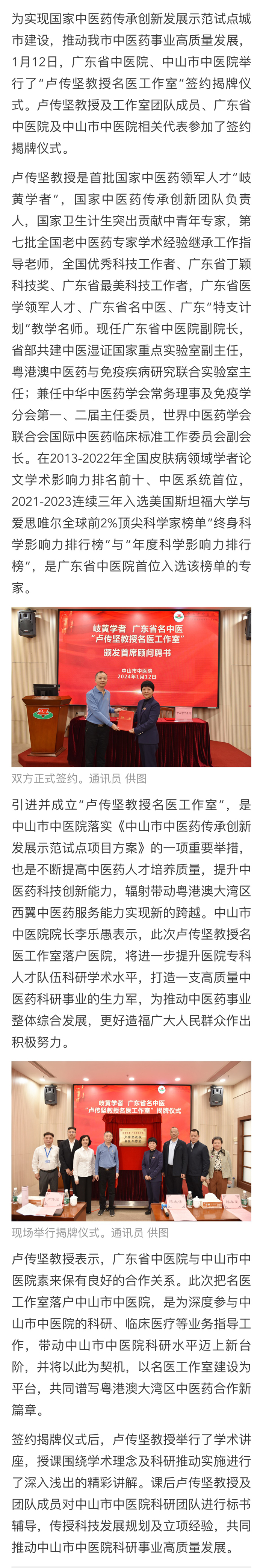 携手省中医院!中山市中医院”卢传坚 教授名医工作室”揭牌