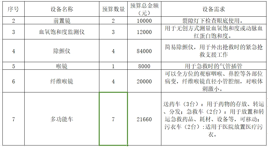 我院计划采购以下医疗设备,现予以公示,欢迎各供应商推荐相应产品: