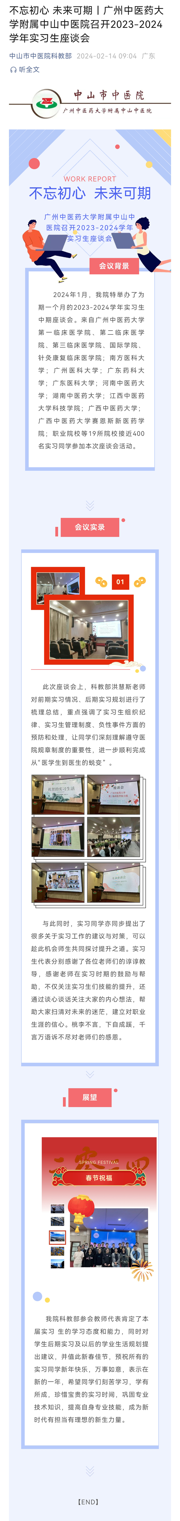 不忘初心 未来可期丨广州中医药大学附属中山中医院召开2023-2024学年实习生座谈会