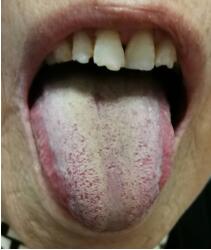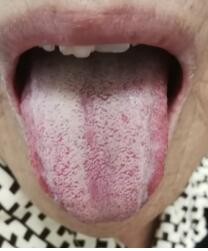 2019年10月23日五诊。情绪较前有明显改善,头痛、右侧身痛好转大半,仍有少许口干口苦,舌质偏红,白腻苔已基本褪去(图3)。前方减陈皮、香附,继服14剂。