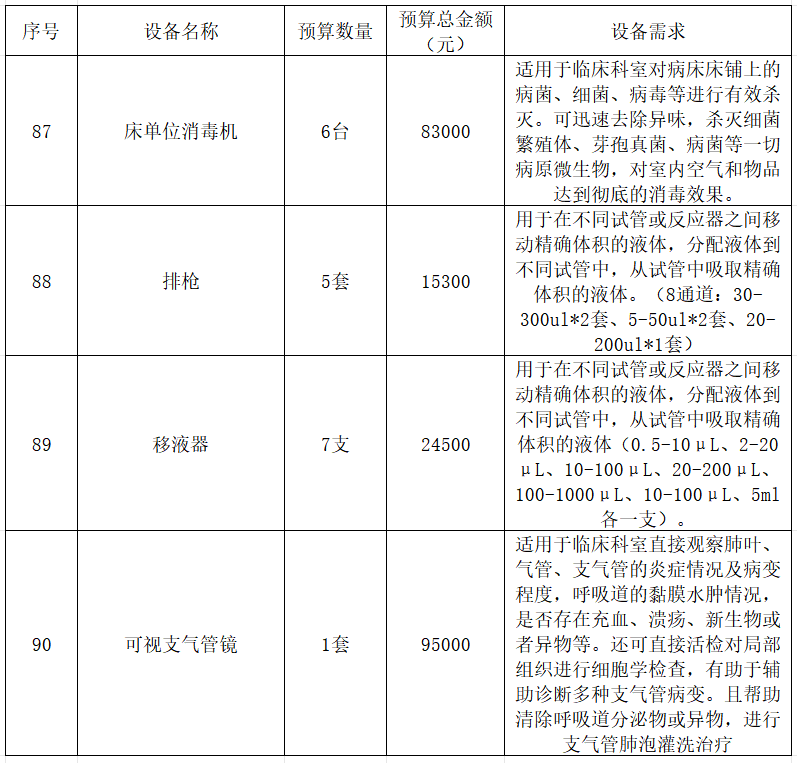 我院计划采购以下医疗设备,现予以公示,欢迎各供应商推荐相应产品: