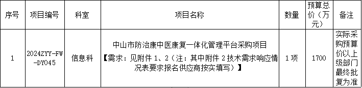 附件1:《中山市防治康中医康复一体化管理平台采购项目建设内容需求》点击下载