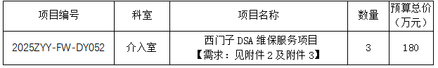 中山市中医院西门子DSA维保服务项目市场调研公告