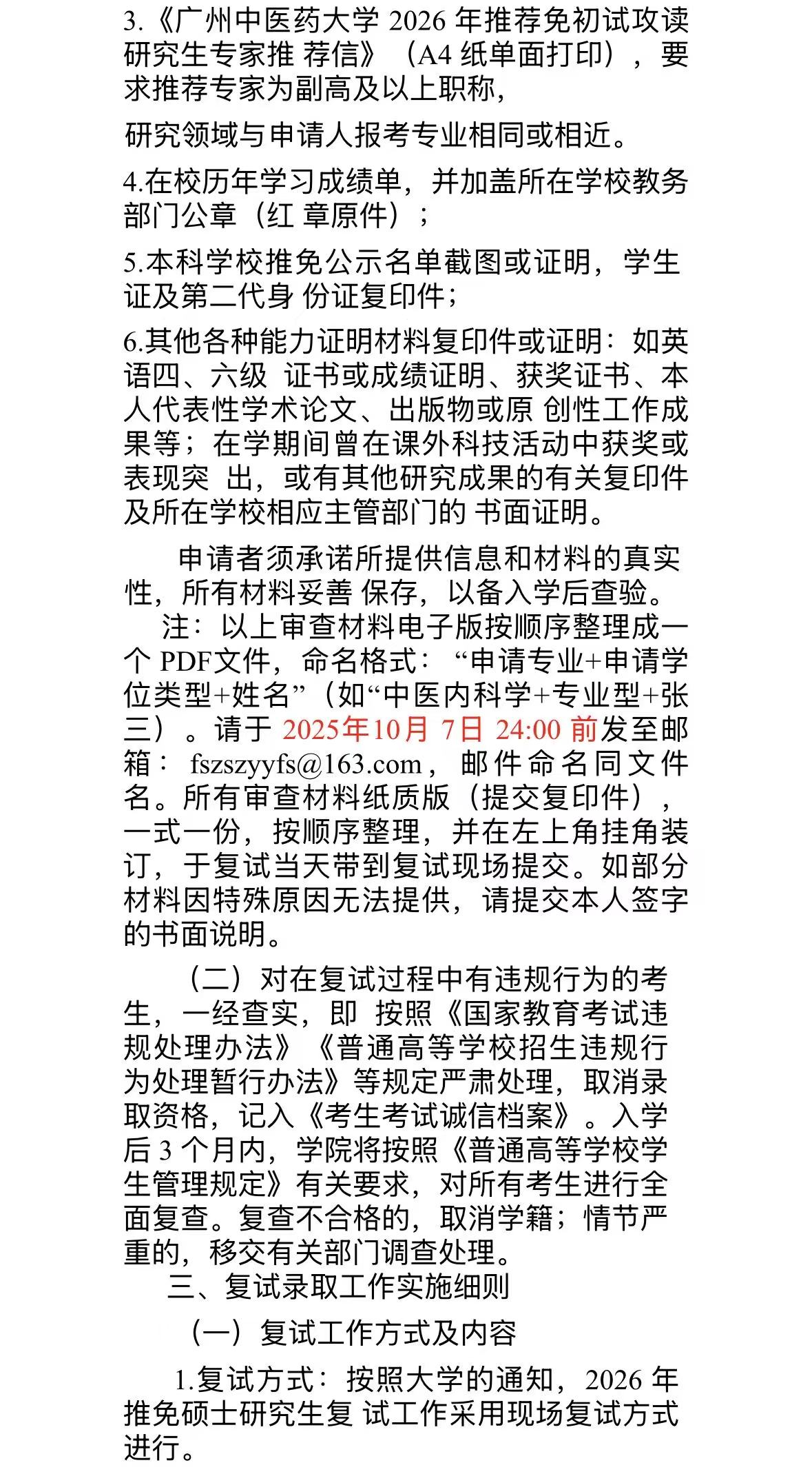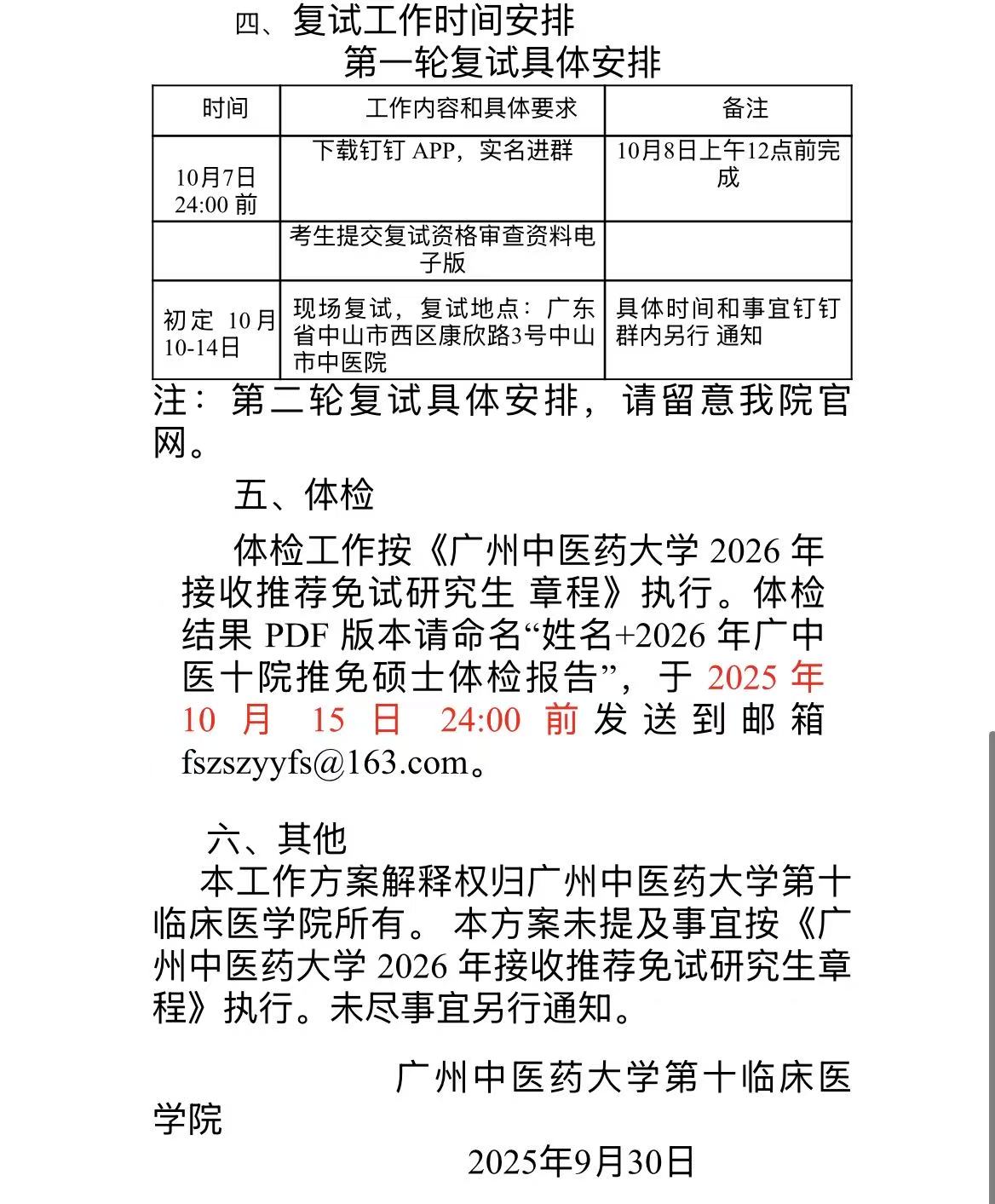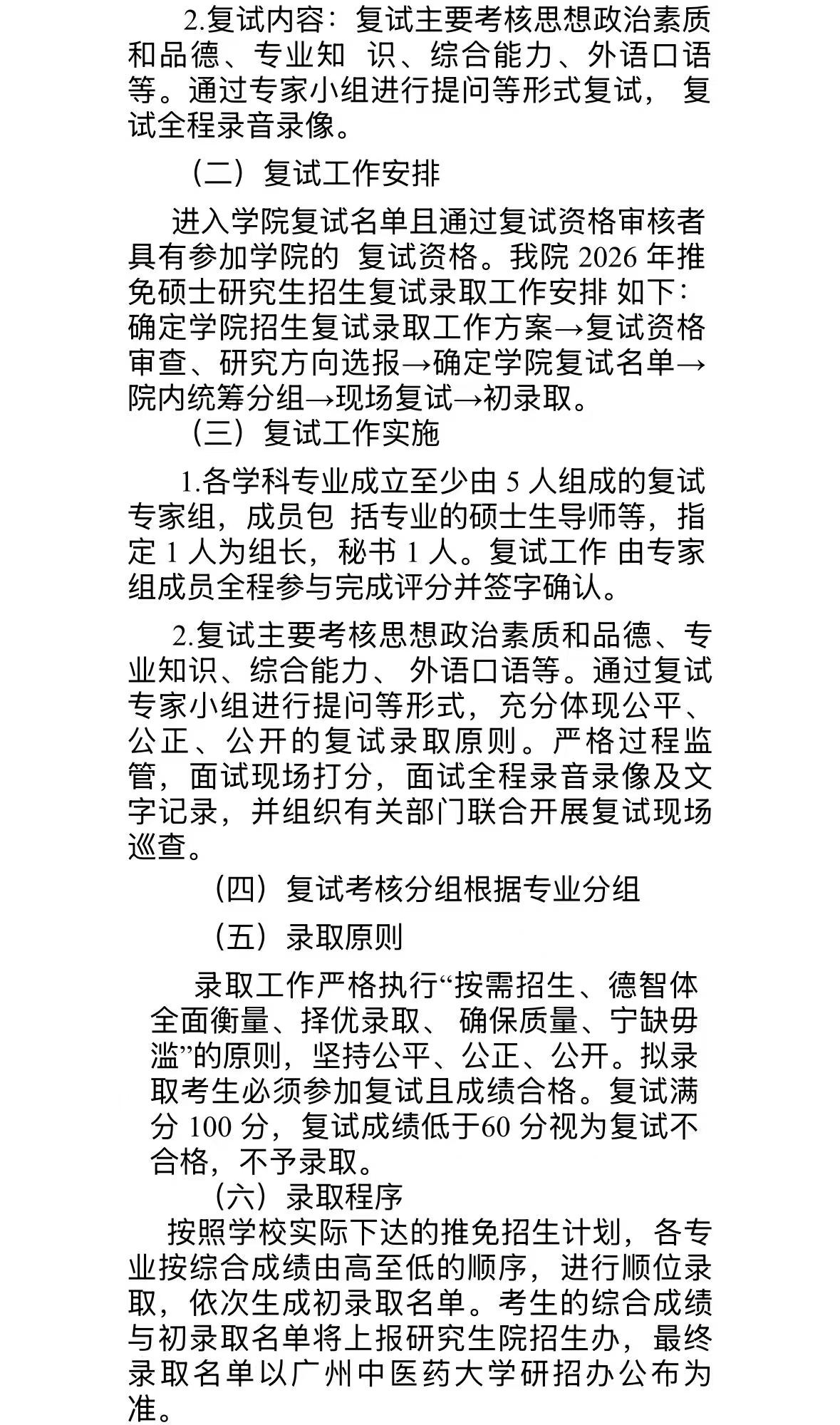 广州中医药大学第十临床医学院2026年接收推免生工作实施方案(第二轮)