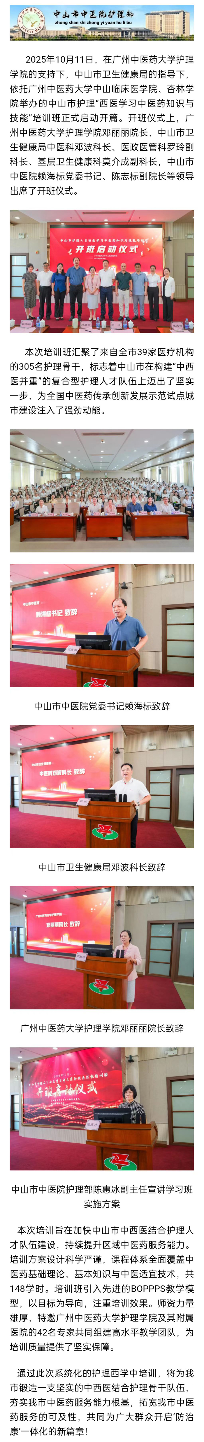 强基固本育人才,薪火相传启新篇 中山市护理“西医学习中医药知识与技能”培训班开班