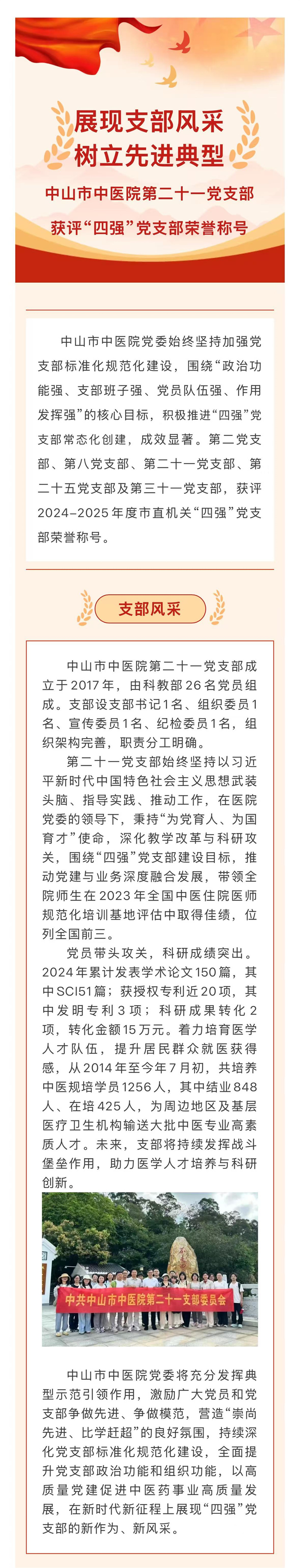 【支部风采】传承岐黄薪火,勇攀科研高峰 中山市中医院第二十一党支部获评“四强”党支部荣誉称号