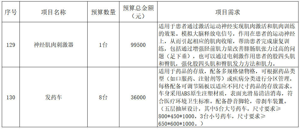 我院计划采购以下设备采购项目,现予以公示,欢迎各供应商推荐相应产品: