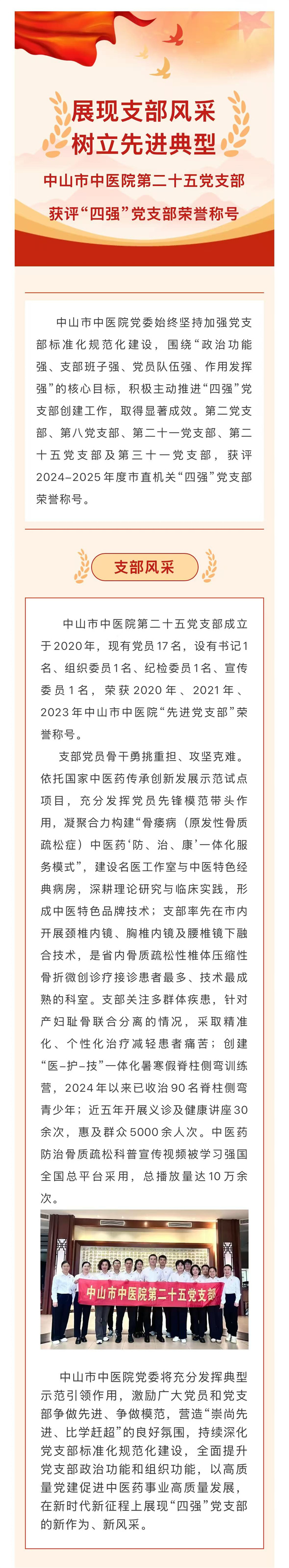 【支部风采】党业相融促发展 中西结合护脊梁 中山市中医院第二十五党支部获评“四强”党支部荣誉称号
