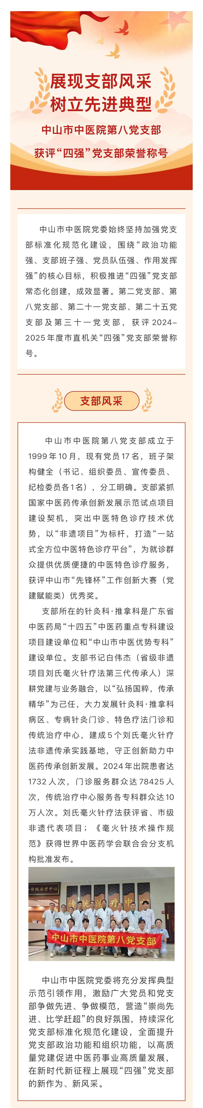 【支部风采】 弘扬国粹针推并济 传承精华护佑健康 中山市中医院第八党支部获评“四强”党支部荣誉称号