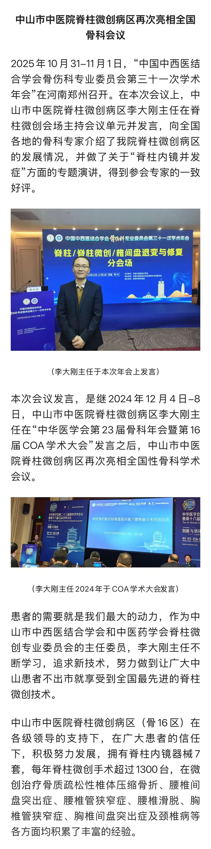 中山市中医院脊柱微创病区再次亮相全国骨科会议
