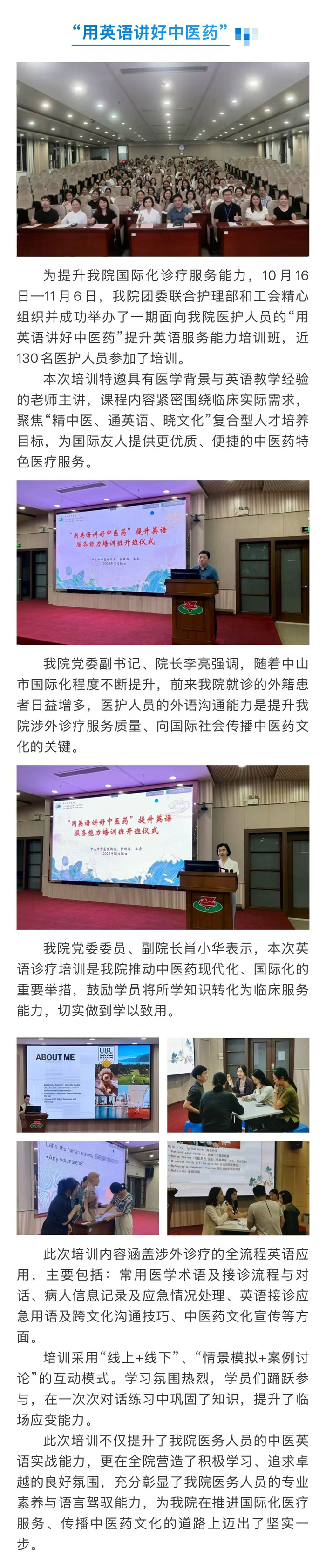 我院提升英语服务能力培训班圆满结束