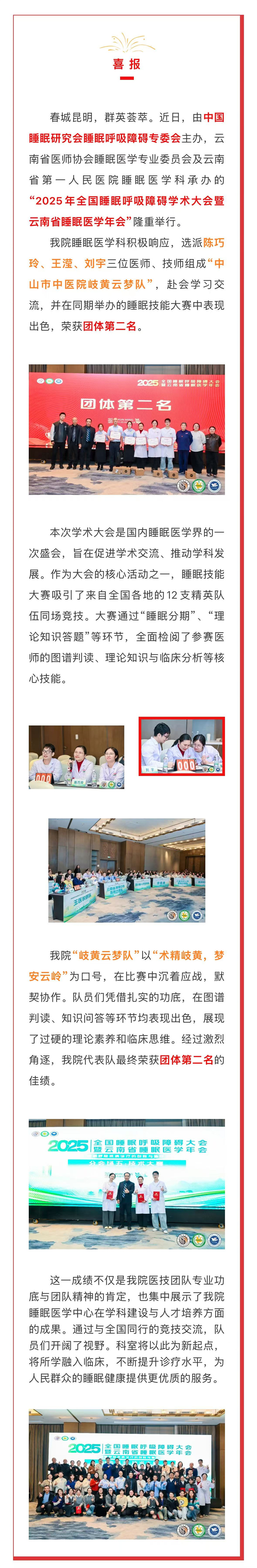 术精岐黄,梦安云岭——中山市中医院睡眠医学中心团队在全国睡眠技能大赛中荣获佳绩