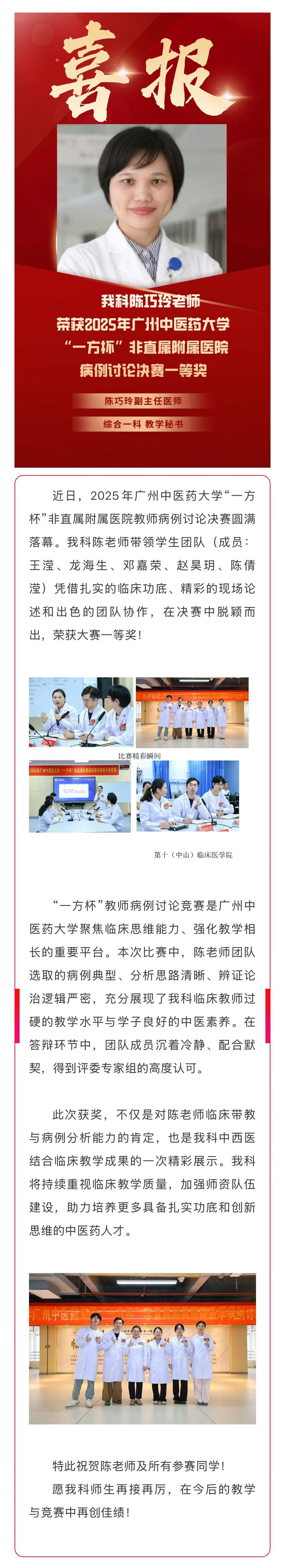 喜报!我科陈老师团队荣获广州中医药大学“一方杯”教师病例讨论决赛一等奖