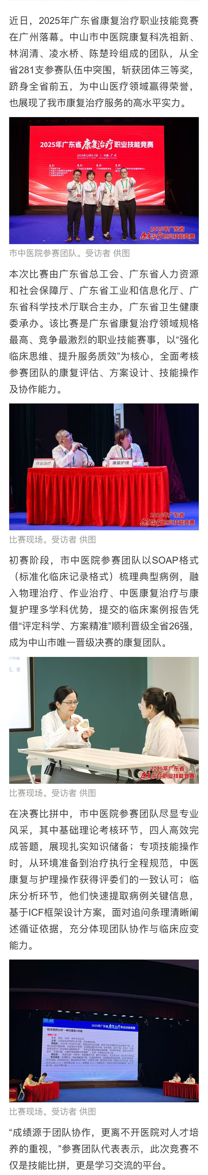 广东省康复治疗职业技能竞赛落幕,中山市中医院获三等奖
