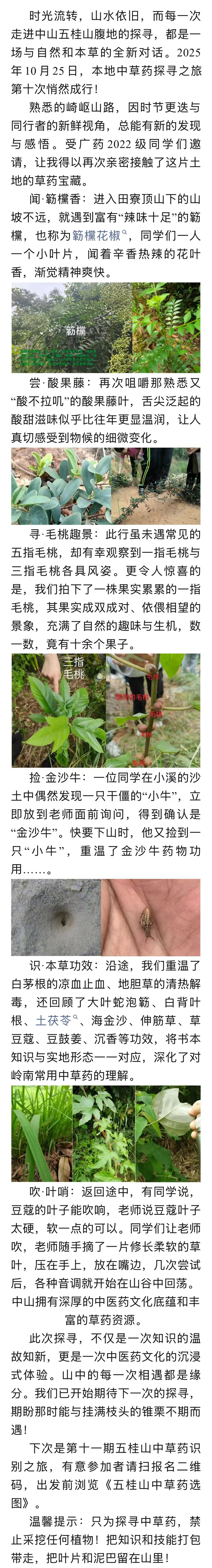 金秋再出发 闻寻识捡尝——中山五桂山岭南中草药探寻记