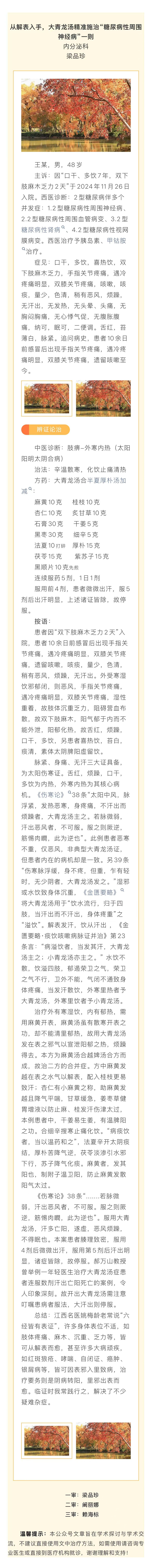 从解表入手,大青龙汤精准施治“糖尿病性周围神经病”一则