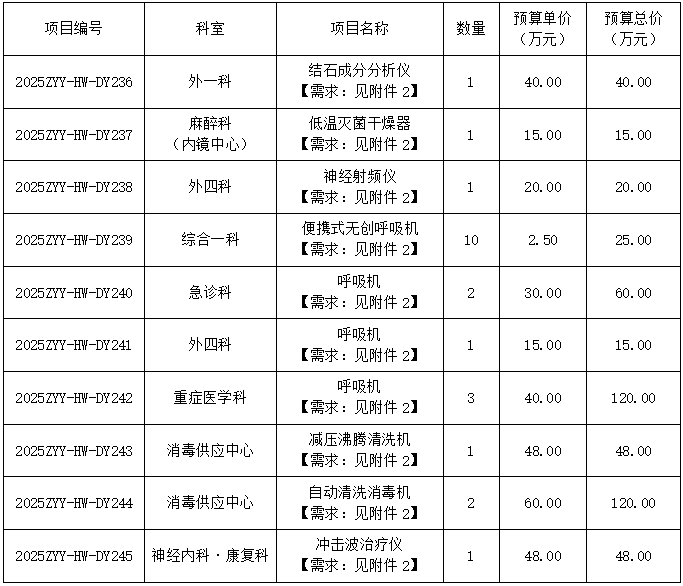 中山市中医院医疗设备采购项目市场调研公告(二十八)