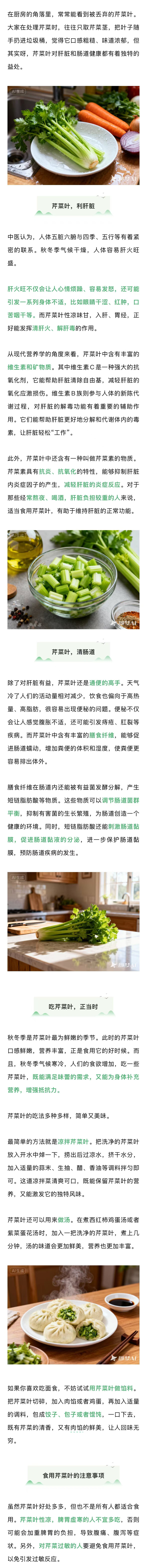 【健康】别再扔芹菜叶了!清肝火、通肠道,做法简单还下饭→