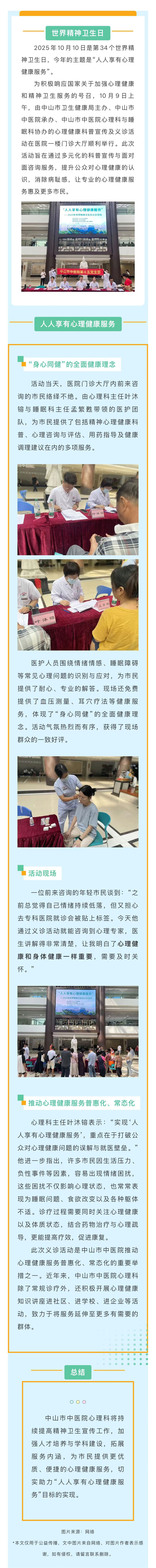推进“人人享有心理健康服务”—— 2025年中山市中医院世界精神卫生日义诊活动