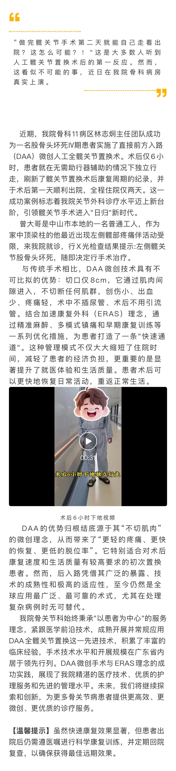 六小时下地,一天出院! ——这台手术刷新了人们对换髋的认知
