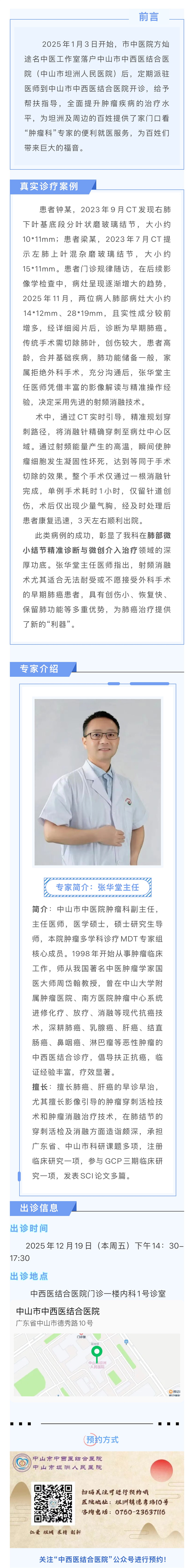 【医讯】12月19日本周五下午肿瘤科张华堂主任医师赴市中西医结合医院坐诊