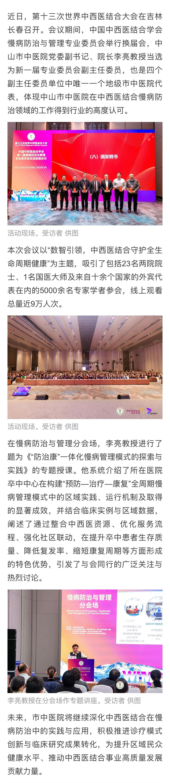 中山市中医院李亮当选副主任委员,中国中西医结合学会慢病防治与管理专委会换届