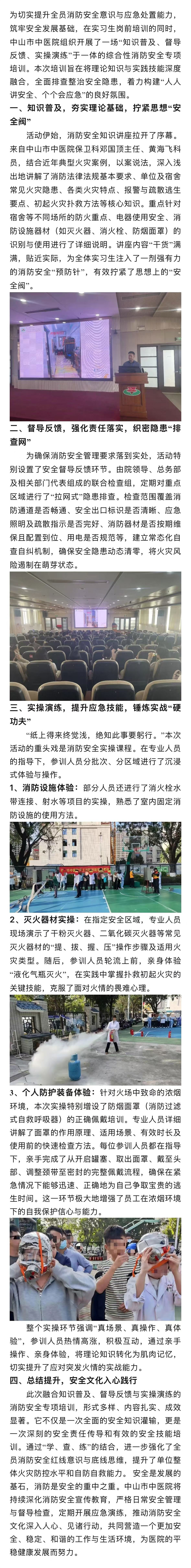 筑牢安全防线,守护共同家园:中山市中医院针对实习生扎实开展消防安全知识普及、督导与实战演练