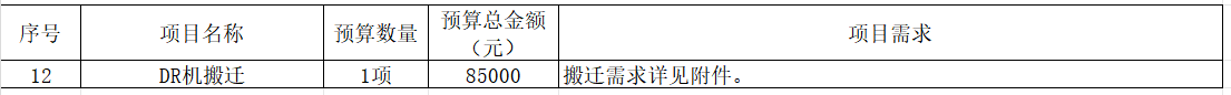 我院计划采购以下DR机搬迁服务项目,现予以公示,欢迎各供应商推荐相应产品: