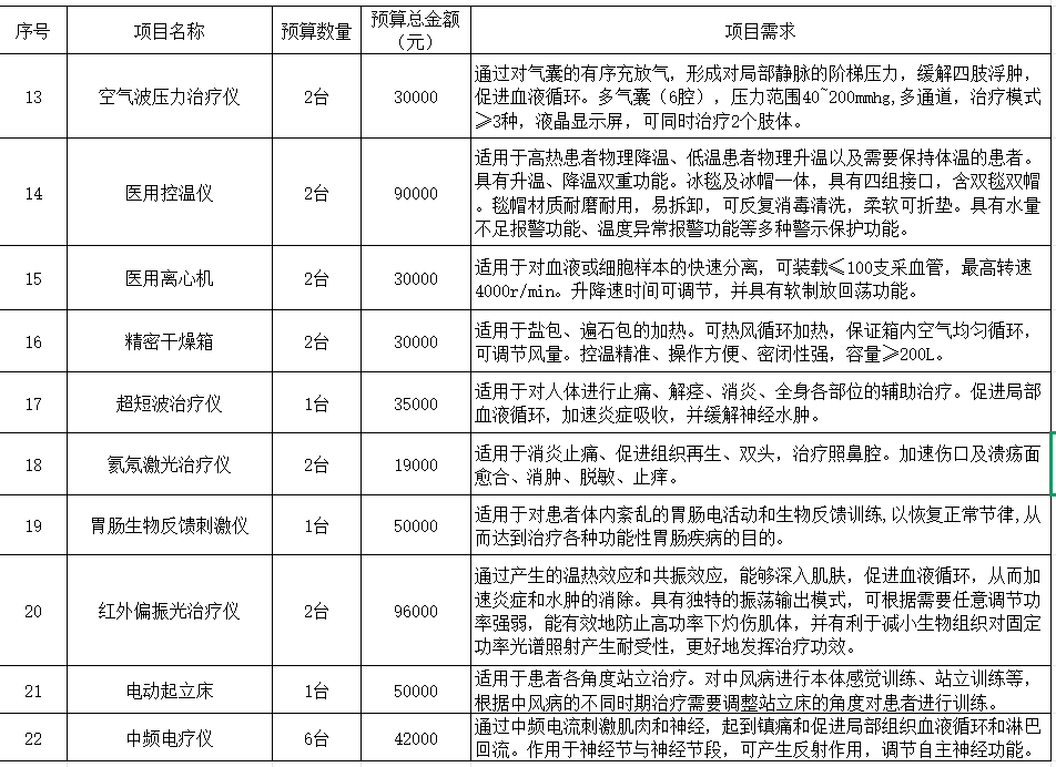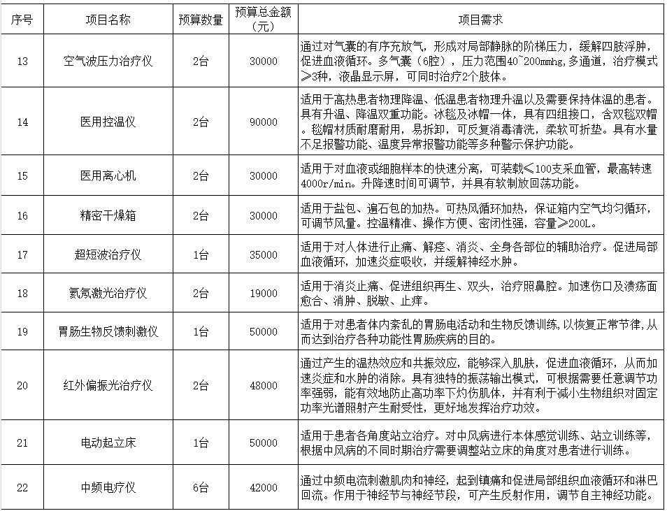 我院计划采购以下医疗设备,现予以公示,欢迎各供应商推荐相应产品: