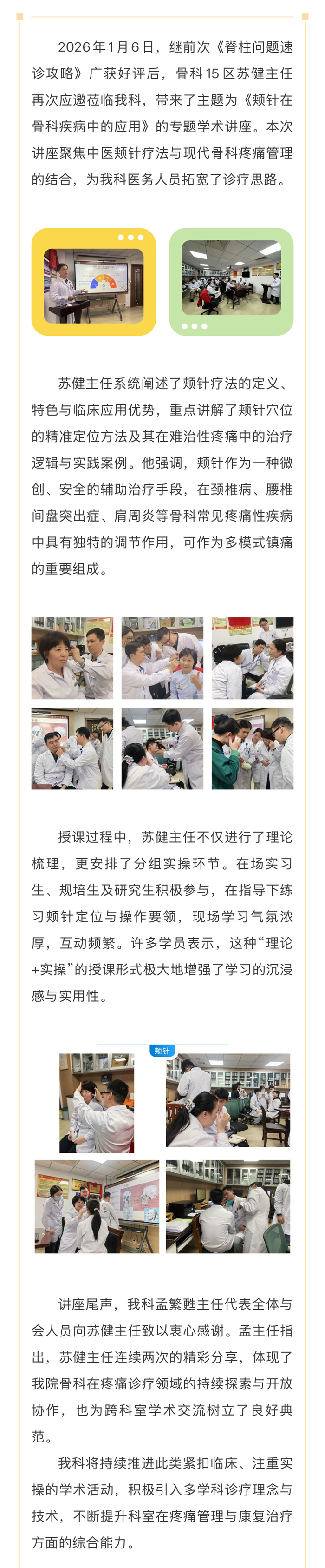 颊针疗法:探索疼痛管理新路径 ——骨科苏健主任再度来我科开展专题讲座