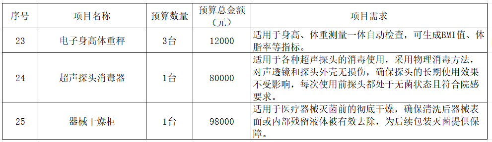 我院计划采购以下医疗设备,现予以公示,欢迎各供应商推荐相应产品: