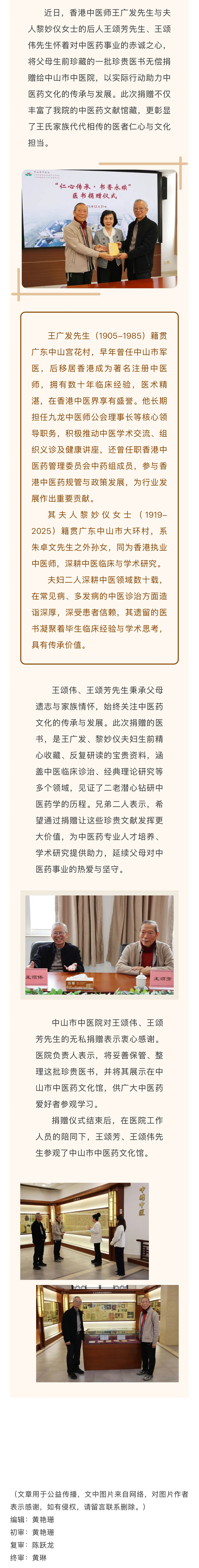 仁心传承,书香永续!王颂伟、王颂芳先生向我院捐赠王广发、黎妙仪夫妇珍贵医书