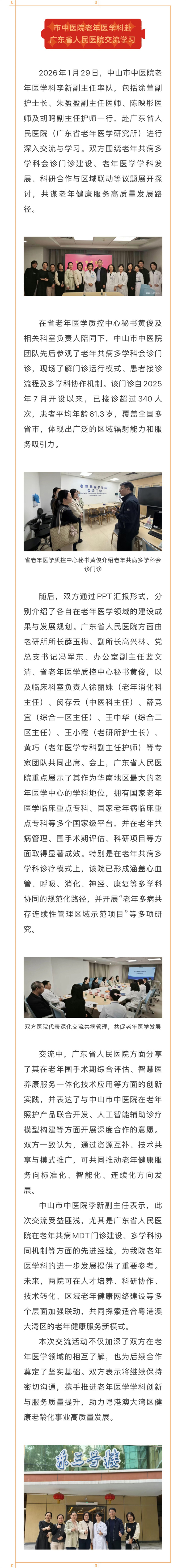 跨院协作促发展,共筑老年健康防线 --中山市中医院老年医学科赴广东省人民医院交流学习