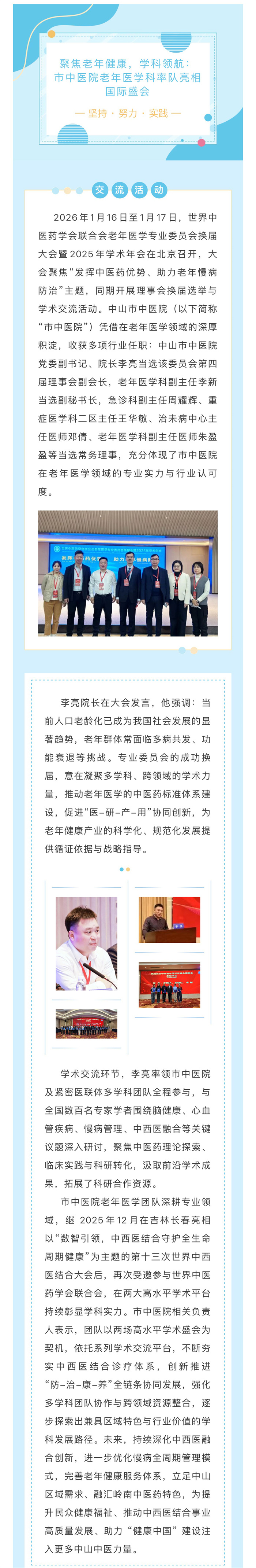 聚焦老年健康,学科领航:市中医院老年医学科率队亮相国际盛会
