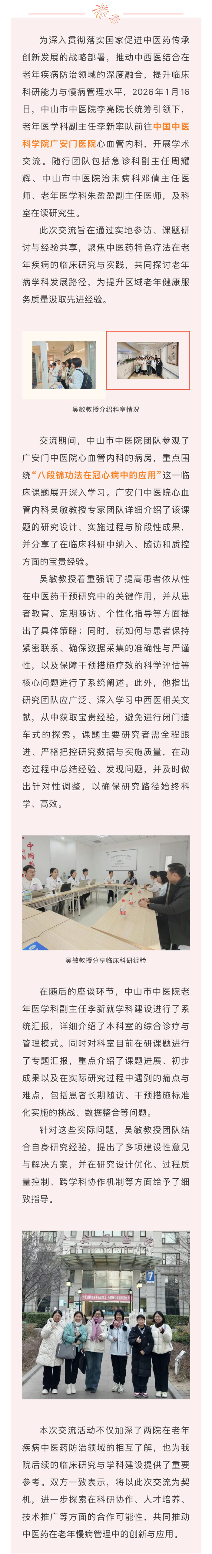 京粤联动促发展,中西融贯护老龄——中山市中医院老年医学科赴广安门医院开展学术交流