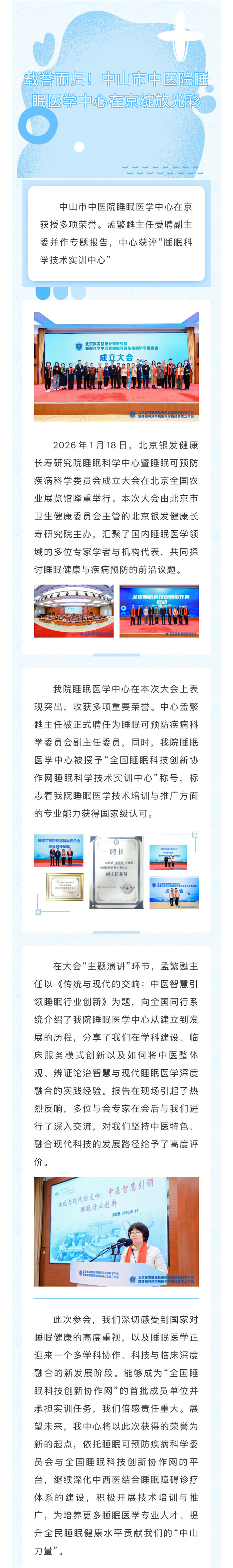 载誉而归!中山市中医院睡眠医学中心在京绽放光彩