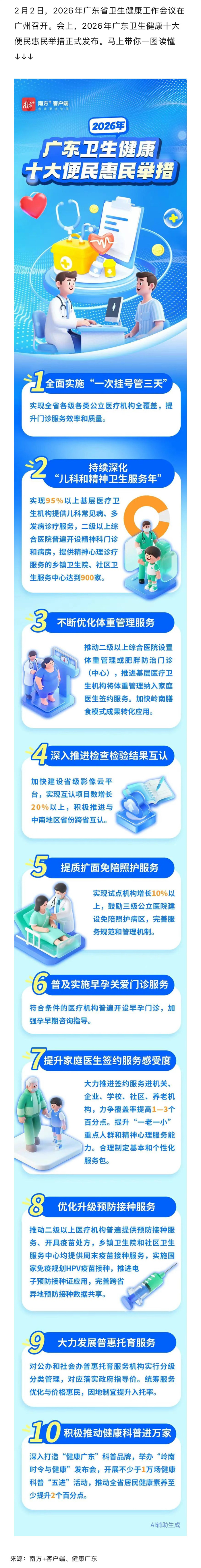【一图读懂】聚焦健康!2026年广东卫生健康十大便民惠民举措正式发布→