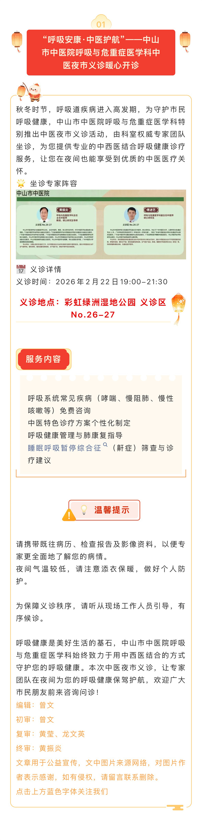 “呼吸安康·中医护航”——中山市中医院呼吸与危重症医学科中医夜市义诊暖心开诊