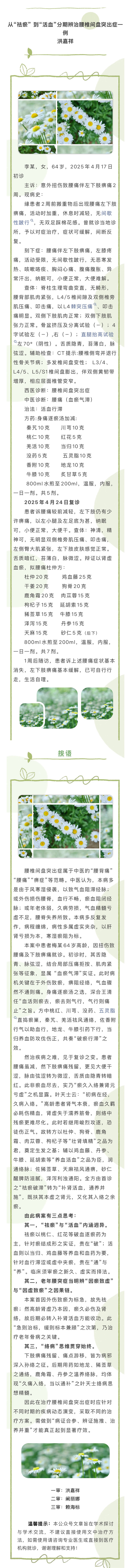 从“祛瘀” 到“活血”分期辨治腰椎间盘突出症一例