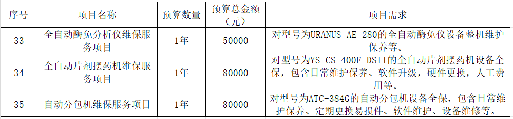 我院计划采购以下医疗设备维保服务项目,现予以公示,欢迎各供应商推荐相应产品: