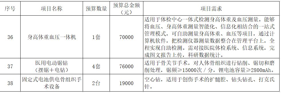 我院计划采购以下医疗设备,现予以公示,欢迎各供应商推荐相应产品: