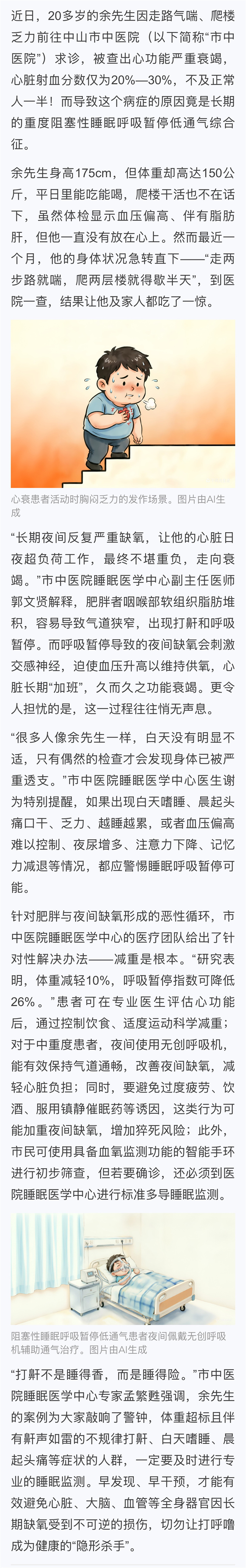 优质睡眠健康生活④丨打鼾≠睡得香!中山小伙突发心衰