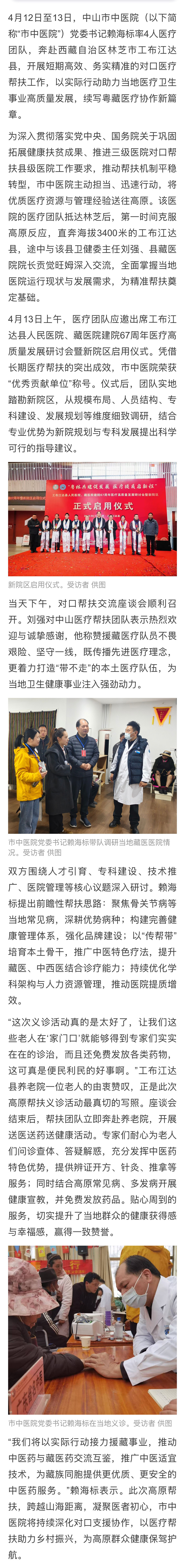 粤藏医疗协作,市中医院赴西藏工布江达县开展对口帮扶