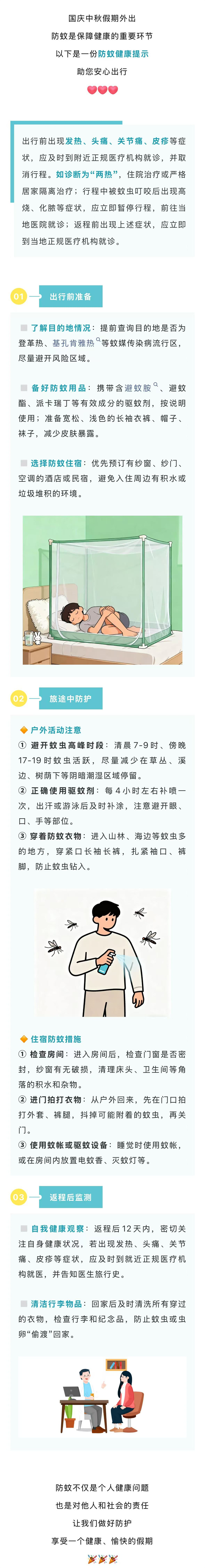 【提醒】国庆中秋假期外出,别忘做好防蚊措施→