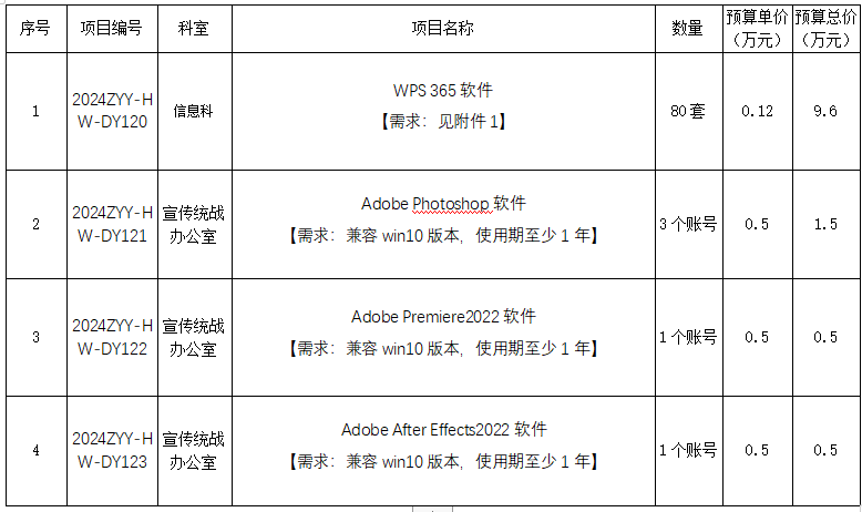 中山市中医院WPS365、Photoshop等软件采购项目调研公告